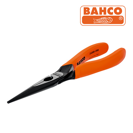 Alicate de ponta longa com cabos monomaterial e acabamento fosfatado (140 mm) 2430 D-140. Tipo: Alicate de bico longo reto. Acabamento: Fosfatado preto com tratamento anticorrosivo. Material: Aço de liga de alto desempenho. Design: Monocomponente, ergonômico para melhor conforto e controle. Capacidade de Corte. Fio de cobre: até 2,5 mm. Ferro: até 1,8 mm. Liga de ferro: até 1,4 mm. Arestas de corte: endurecidas, ideais para fios macios e duros. Fabricante: Bahco - PN: 2430 D-140