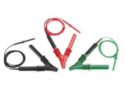 O Fluke TLK1550-RTLC é um conjunto de cabos de teste com garra de 10 kV, projetado para ser utilizado em testes de alta tensão.